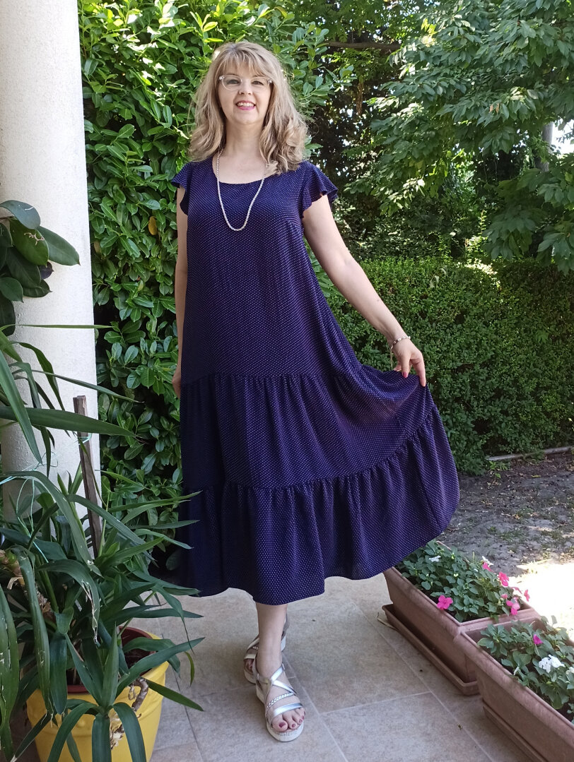Figyelem! A szabásminták méretezése nem azonos a bolti ruhák méreteivel.A lemért méreteidet vesd össze a táblázat adataival. Ennél a ruhánál főként a mellbőség számít.A termék ára 34-től 50-ig / 168 cm testmagasság szerinti méretsor nyomtatott szabásmintáit, a pdf munkafüzetet tartalmazza, és hozzáférést a videóhoz. A szállítás díja nincs az árban.A szállítási díjakat itt találod.A munkafüzet és a videó az A- és B-modell varrását is bemutatja.Leírás: A Zoé ruha vékony szövött anyagból készül. A-vonalú, mellvarrásos, csípővonalon szabott, szoknyrésze és válla fodros. Az A-modell bélelt, a B-modell bélés nélkül készül.